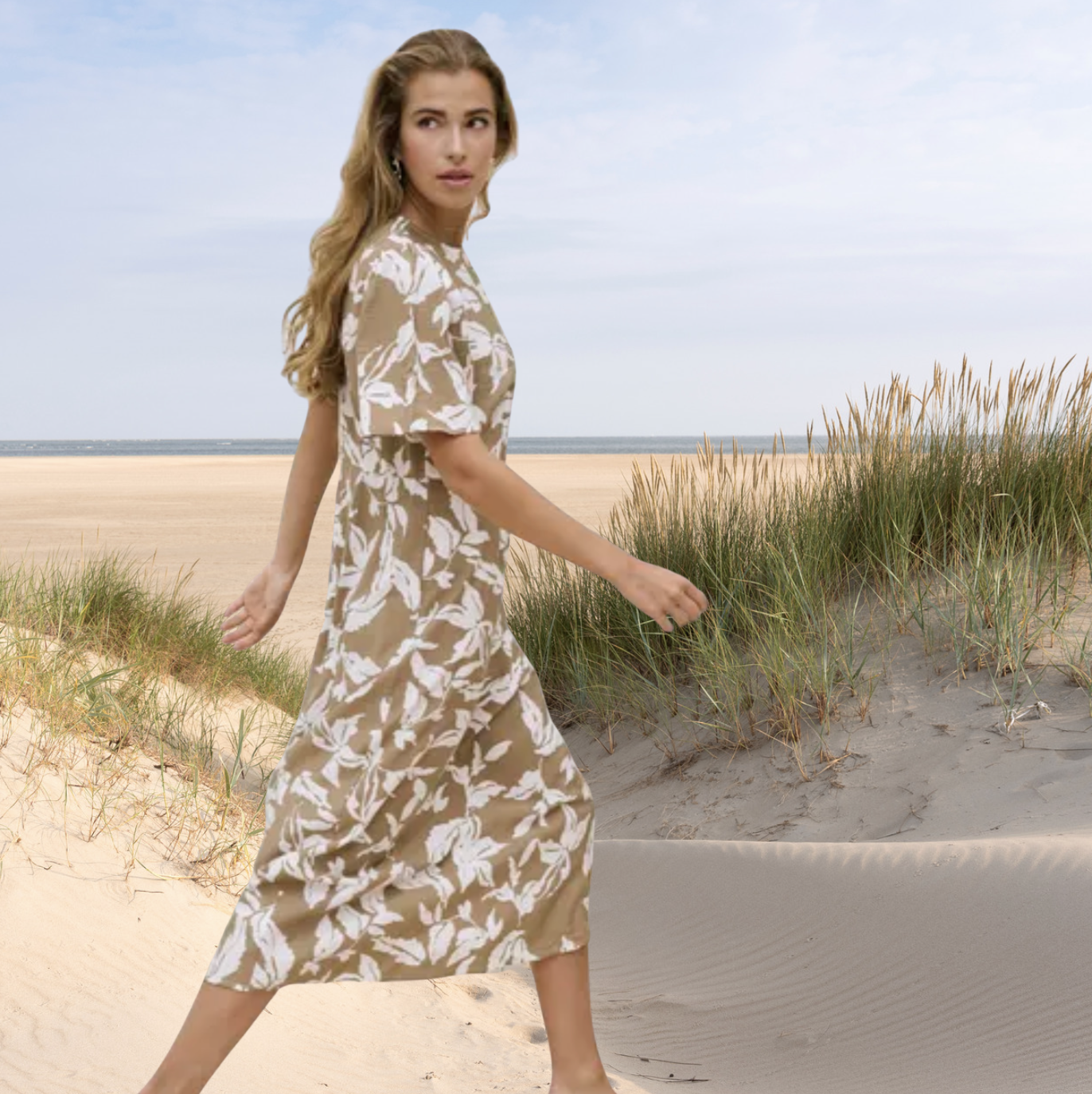Light and breezy, this midi length dress exudes relaxed elegance. It has a modest round neckline, back zip closure and...
