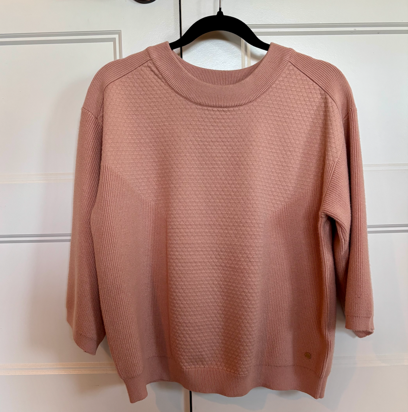 Ladies knit sweater by Fransa. Waist length with slightly curved hem. 80% viscose/20% polyester.