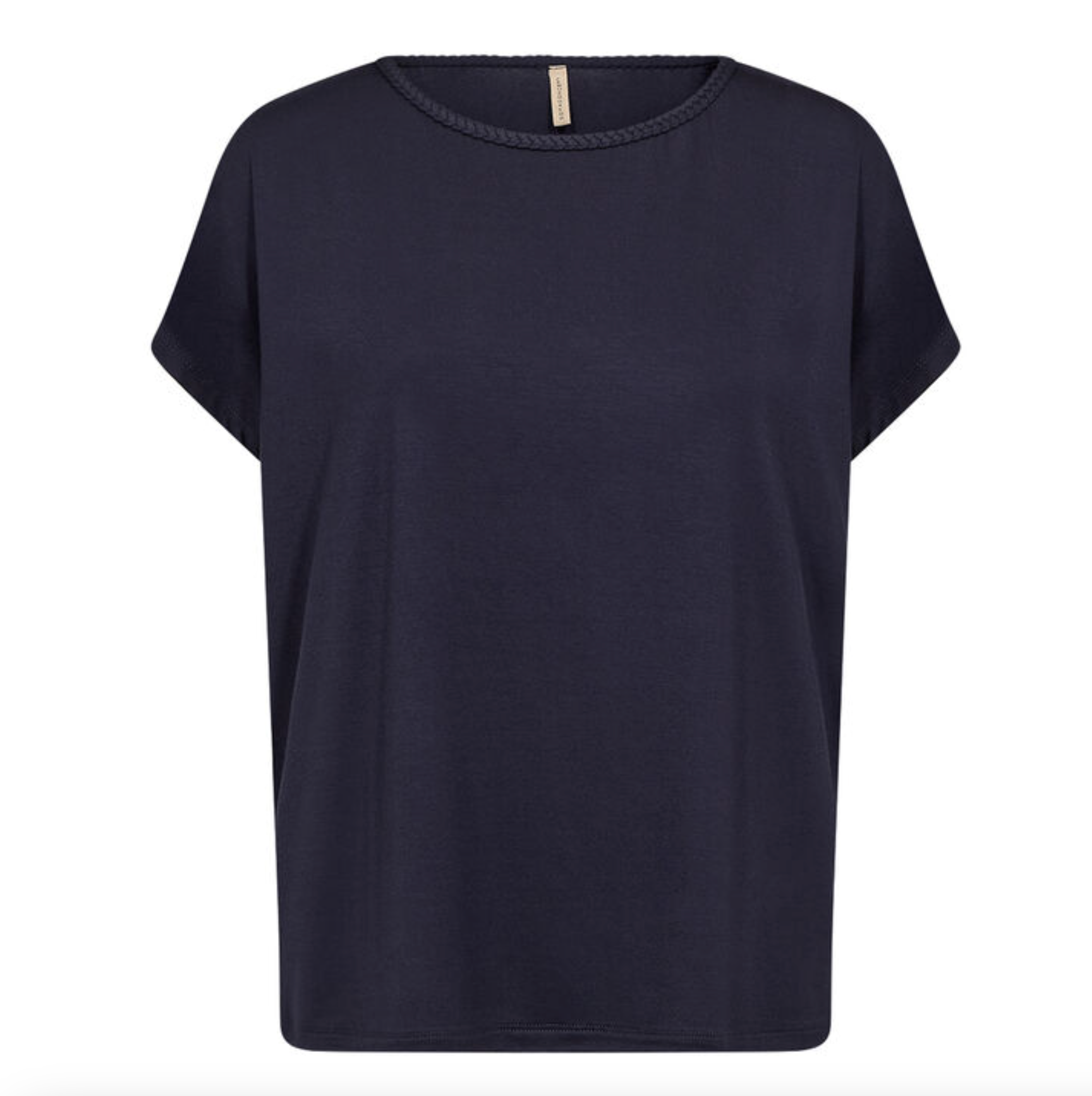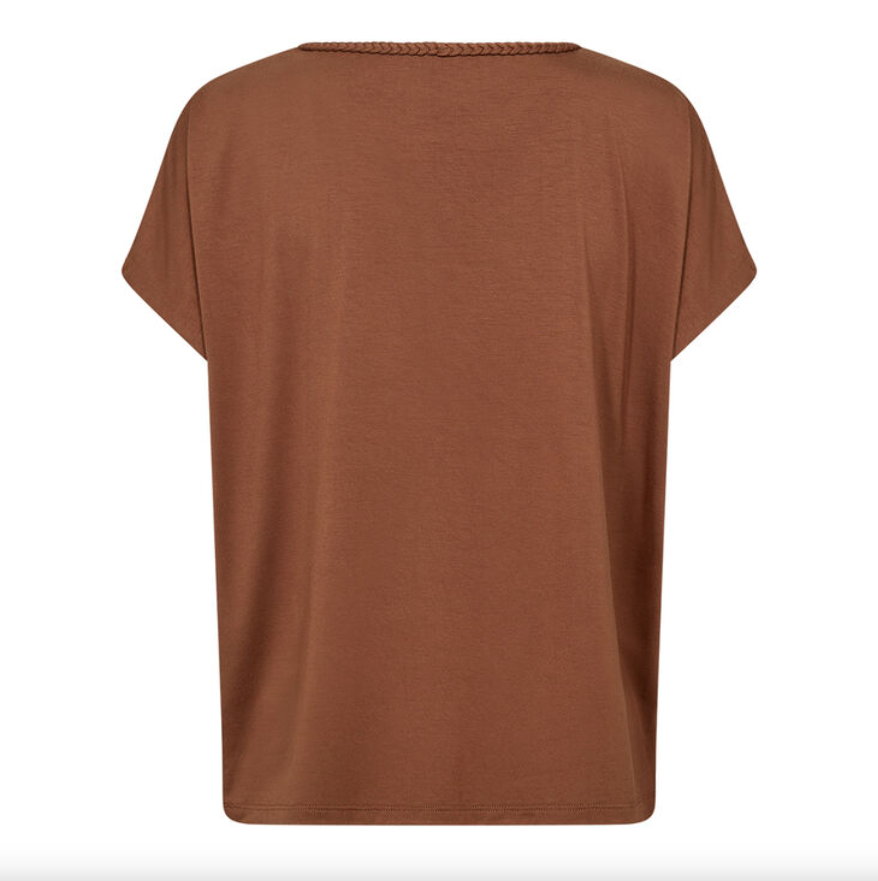 Marica is a t-shirt made from a 93% lyocell/7% elastane blend. It features a round, braided collar and a relaxed...