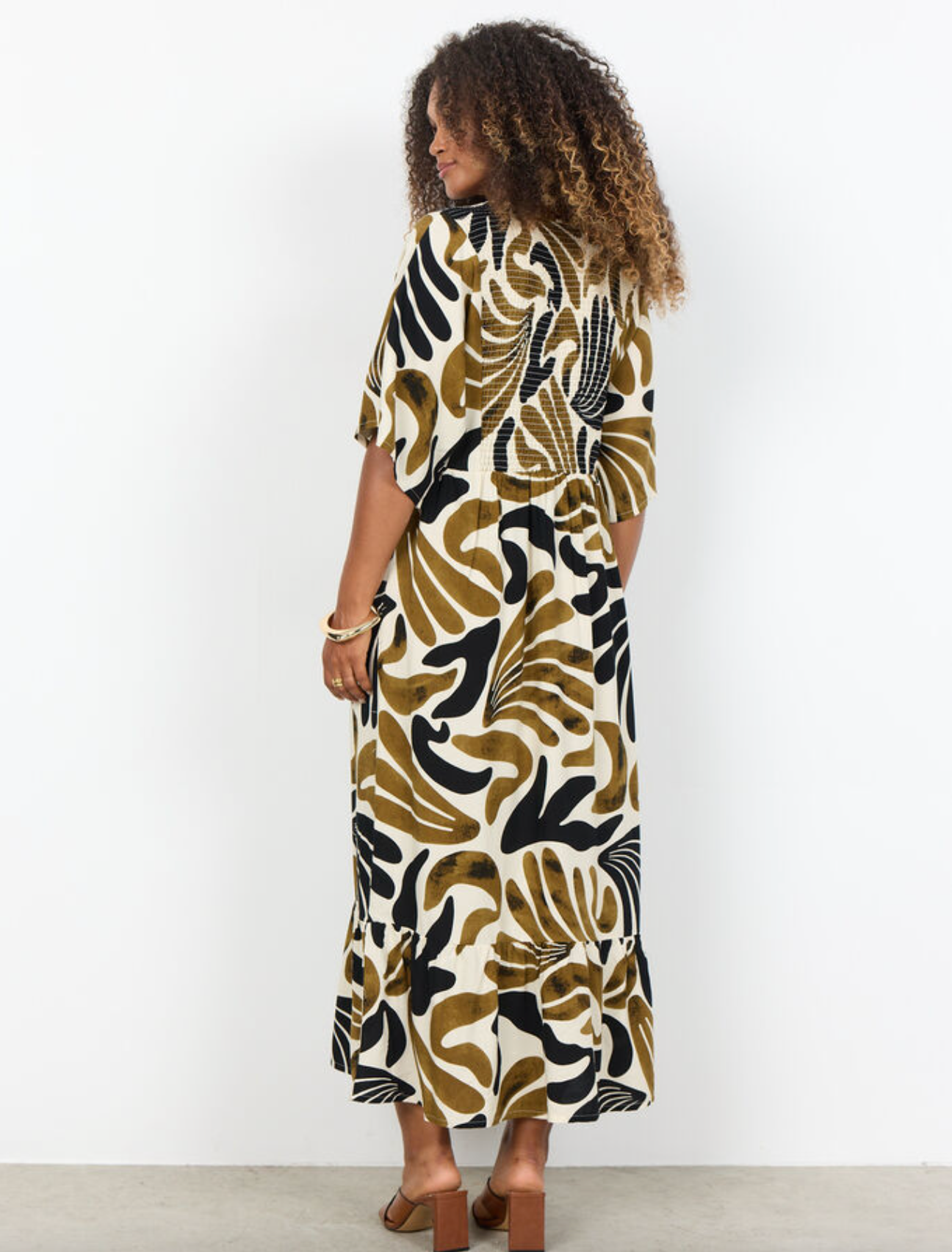 Feldi dress is crafted from 100% LENZING™ ECOVERO™ Viscose. It has a v-neckline, short sleeves, and a flowing midi length...